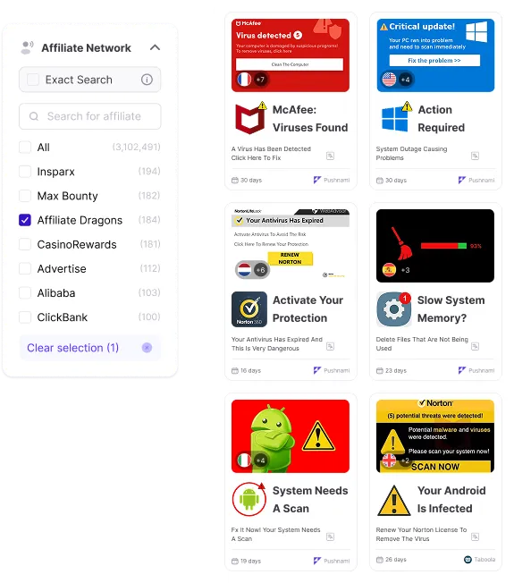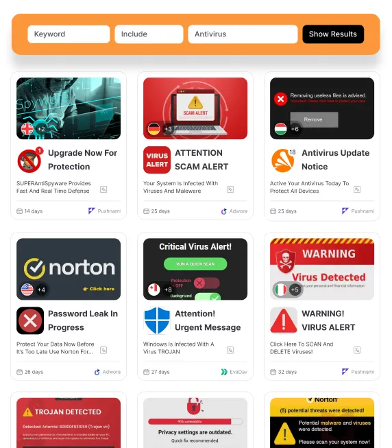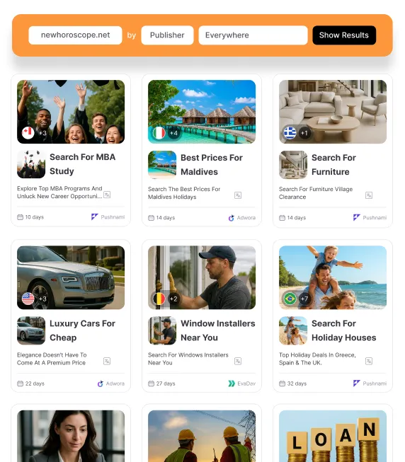 Our Advanced Search lets you find exactly what you need. Filter by keyword, country, network, or advertiser in seconds.